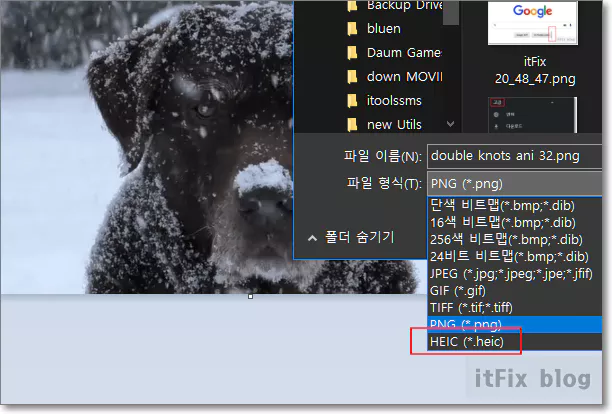 하지만 그림판에서는 애플의 HEIC 포맷을 지원하게 되었지만 아직도 webP로의 저장은 지원하지 않는 것으로 보입니다.