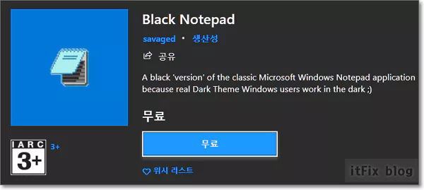 MS 앱스토어를 연 다음 black notepad라고 검색해서 다운로드 및 설치하면 됩니다.