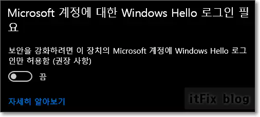 그 이유는 윈도우 설정에서 로그인 옵션을 구성할 경우에 Windows Hello에 전권을 위임한 경우 이 옵션 자체가 사라집니다.