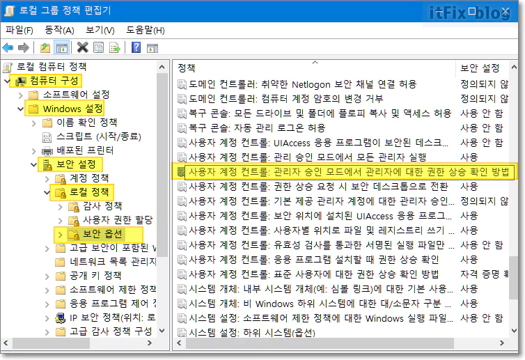 - '컴퓨터 구성 > Windows 설정 > 보안 설정 > 로컬 정책 > 보안 옵션'