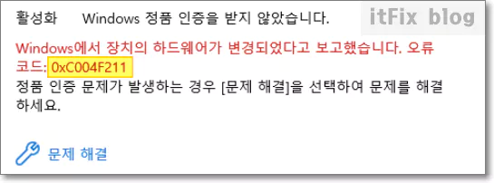 0xc004f211, 메인보드 등의 부품 교체후 윈도우 정품인증 불가 문제