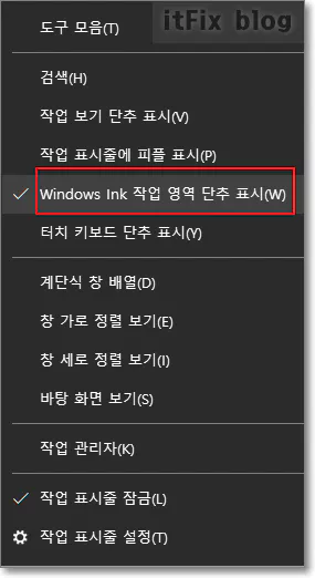 윈도우즈 작업 표시줄의 알림 영역에는 Windows Ink 아이콘을 보이게 또는 보이지 않게 할 수 있습니다.