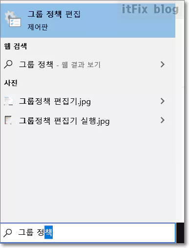 작업 표시줄의 알림 상자에 '그룹 정책' 이라고 입력한 다음 관리자 권한으로 실행합니다.