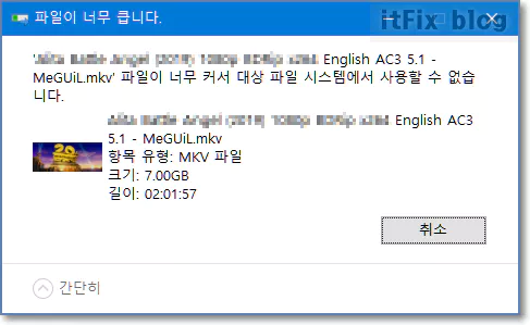 USB 메모리에 여유공간이 충분한데 복사되지 못하는 경우