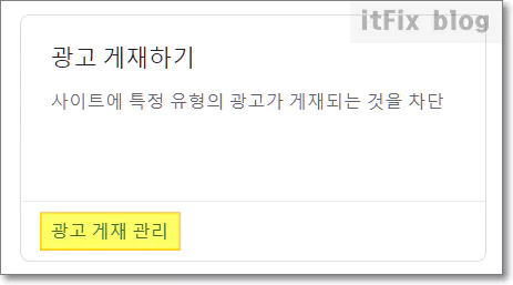 2. 우측의 항목중 광고 게재하기 항목의 광고 게재 관리를 클릭합니다.