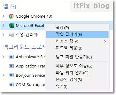 5. 작업 관리자에서 임시적 조치