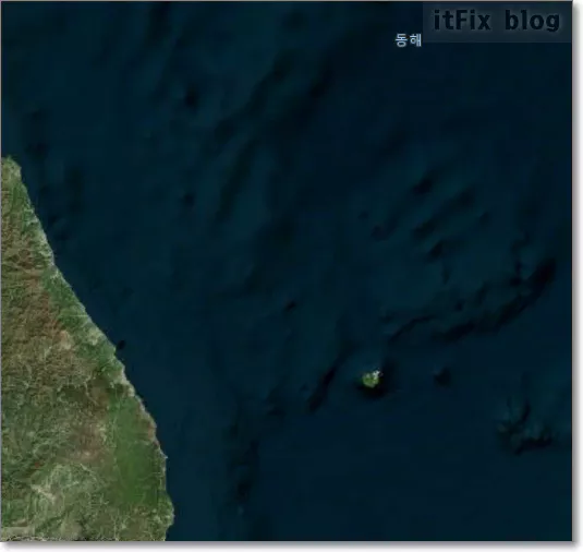 마이크로소프트의 윈도우즈 위성 맵에서는 동해라고 표기되어 나옵니다. 이 역시도 다른 국가들에서 보았을 때에는 어떻게 나오는지의 확인이 필요할 것 같지만 적어도 독도를 포함해 정확히 나옵니다.