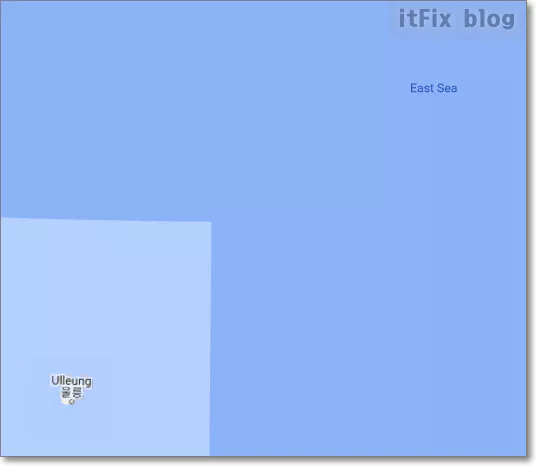 글로벌 맵의 최강자 구글맵의 표시를 찾아보았습니다. 동해 또는 East Sea로 단독 표기하고 있습니다. 그러나 위치 기반 시스템을 적용할 구글이므로 일본에서는 일본해로 보이고 다른 국가들에서는 Sea of Japan(East Sea)로 보인다고 합니다. 독도에 대한 내용도 없습니다.