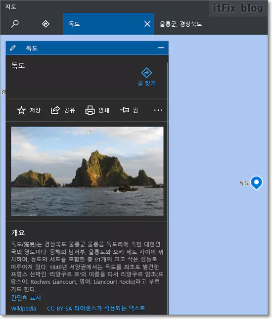 지도상에서 독도를 검색해도 정확하게 정보가 나옵니다.
