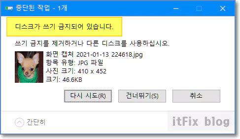 '디스크가 쓰기 금지 되었습니다.' 오류 해결 방법