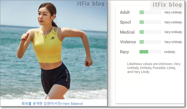 김연아 선수의 사진인데 의외로 덜 선정적이라고 판단했지만, 그래도 선정적이라는 판단에 한 칸을 더한 것이 보입니다.