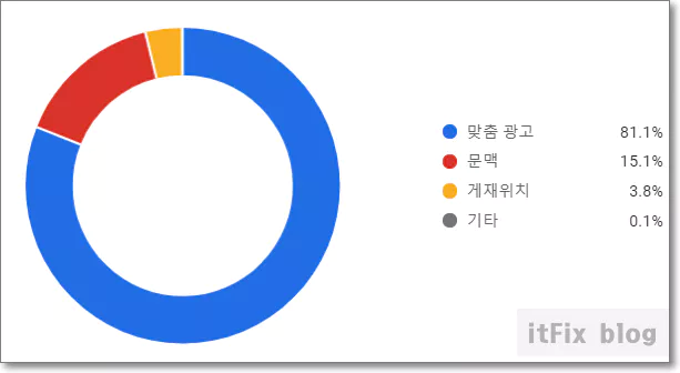 아래의 이미지는 이 블로그의 광고 타게팅 유형에 따른 예상 수입을 나타내고 있습니다. 맞춤 광고의 비율이 80%를 넘어가고 있습니다.