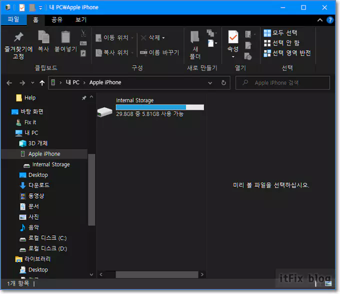 만일, 아이폰에 대한 PC의 인식이나 드라이버 파일들에 문제가 없다면 아이폰 항목이 보입니다.