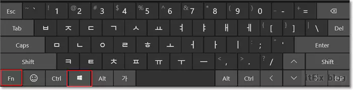 펑션키(fn)와 윈도우 로고키를 누르면 윈도우 로고키와 조합으로 작동하는 모든 단축키가 먹통이 됩니다.