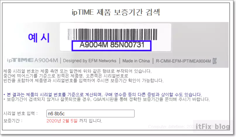 IP TIME 공유기 남은 AS기간, 보증기간 확인하는 방법