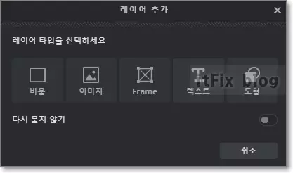 UI가 포토샵과 매우 비슷한 픽슬러 E 버전은 포토샵과 마찬가지로 레이어 옵션창이 우측으로 배치되어 있으며 사용법도 오히려 포토샵보다 간결하고 사용하기 쉬운 면이 있습니다. 레이어 추가표시인 더하기 표시를 누르면 팝업창이 도움을 주는 데 바로 이미지 레이어 삽입도 가능합니다.