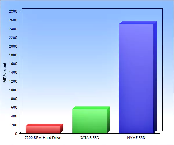 PC용 저장 드라이브 HDD, SATA SSD, NVME SSD의 속도 비교