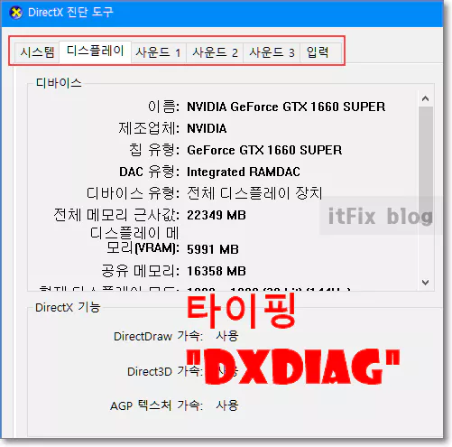 설치된 그래픽 카드들과 사운드 카드들은 간단하게 다이렉트x 진단 도구를 실행해 살펴보거나 장치 관리자를 열어 확인해 볼 수 있습니다.