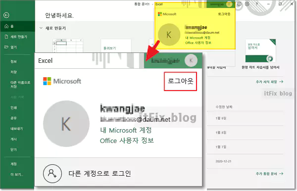 이때, 사용중인 MS 오피스가 있다면 로그 아웃시키면 원드라이브도 로그 아웃되므로 이 작업을 함께 진행하는 것이 좋습니다.