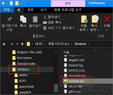 참고로, 윈도우 파일 탐색기의 실행 파일인 explorer.exe는 C:\Windows에 위치하고 있습니다.