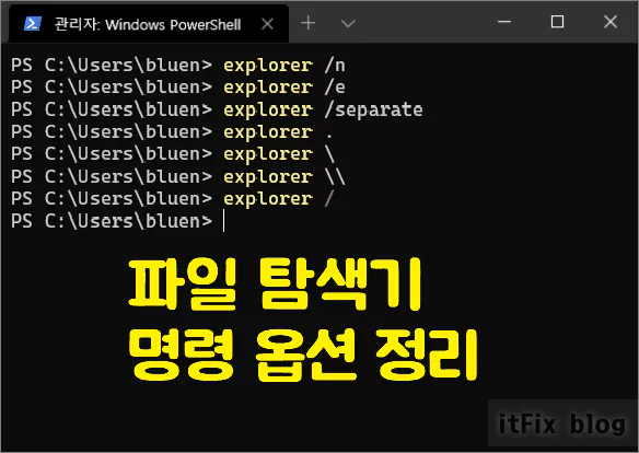 윈도우즈의 명령 프롬프트(CMD) 또는 터미널 프리뷰의 파워셀에서 explorer 명령어를 치면 파일 탐색기가 실행됩니다. 그런데 explorer라는 명령어 뒤에는 다양한 옵션을 부여할 수 있으며 옵션에 따라 파일 탐색기가 열리는 방식은 모두 다릅니다. 이러한 기본적인 옵션은 윈도우의 바로 가기 아이콘의 속성에도 그대로 적용되는 구문이므로 활용성이 높은 편인데도 불구하고 다소 소외된 명령 옵션들이므로 옵션을 정리해 보았습니다.