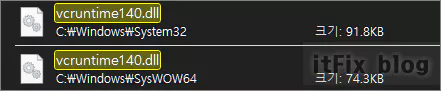 참고로 vcruntime140.dll은 기본적으로 windows/system32, windows/syswow에 설치되며 많은 버전이 있고 각기 용량도 틀립니다.