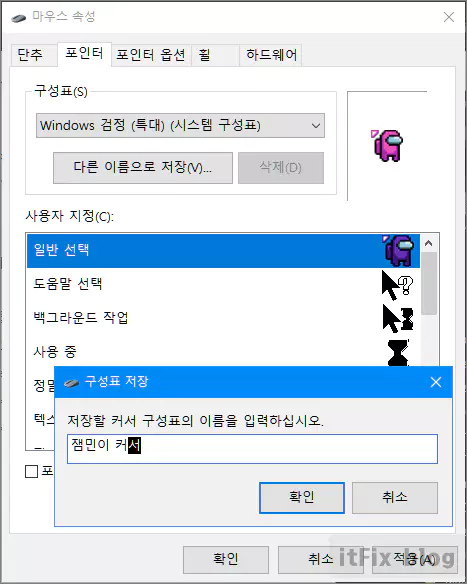 마우스 커서가 재부팅 하면 자꾸 바뀌는 경우, 어몽 어스 애니메이션 커서
