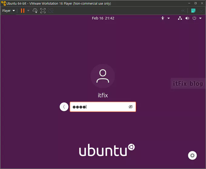 우분투의 설치가 모두 끝나면 첫 화면은 윈도우와 마찬가지로 우분투 로그인 화면입니다.