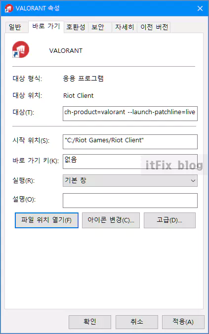 제거되지 않는 프로그램의 실행 아이콘을 마우스로 우클릭한 다음 속성을 클릭합니다. 그다음 바로 가기 탭에 존재하는 '파일 위치 열기' 버튼을 클릭하면 파일 탐색기가 설치된 경로에서 열리게 됩니다.