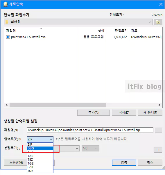 egg 확장자 파일의 분할 압축 및 해제에 관하여