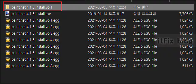 위와 같이 분할 압축된 파일은 Vol 1번 파일만 압축을 해제하면 자동으로 1~8까지의 모든 파일에 들어 있는 파일들을 해제하게 됩니다. 따라서 Vol 1번 파일만 더블 클릭하여 압축을 해제하면 되는 것 입니다.