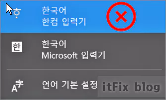 - 한컴 오피스가 설치된 PC일 경우 한컴 입력기를 제거하고 Microsoft 입력기 하나만 남겨둡니다.