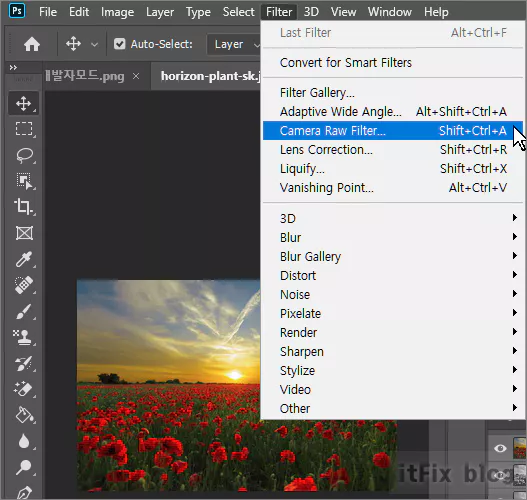 1. Filter > Camera Raw Filter 클릭
