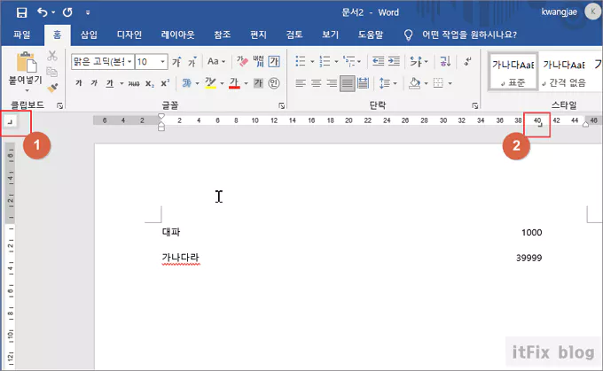 MS 워드에서 한컴 워드의 왼쪽 오른쪽 정렬인 나눔정렬 기능 이용하기