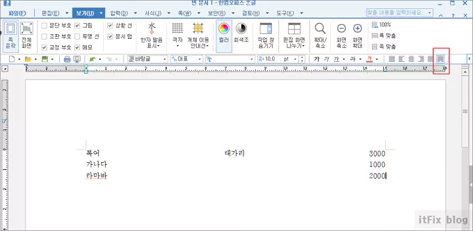 이 기능을 처음 사용할 때에는 다소 어색한 느낌이 들 수 있으나 자주 사용하다 보면 오히려 한컴 워드의 나눔 정렬보다 편하다고 느낄 수도 있습니다.