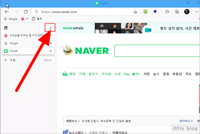 즉, 세로탭 가로 탭 전환 버튼은 선호하는 스타일대로 엣지 브라우저의 모습을 사용자화하여 사용할 수 있게 해주는 도구라고 할 수 있습니다.