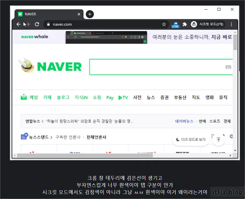 개인적으로 이 크롬 전체 창 테두리 오류를 인위적으로 발생시켜 오류 해결 방법을 찾아보려고 시도했으나 오류를 일으키는 것에 실패해서 정확한 오류의 원인과 해결방법을 아직도 찾고 있는 중입니다. 이러한 오류가 발생했고 해결 방법을 알아내신 분이 계시다면 제보해 주셨으면 감사하겠습니다.