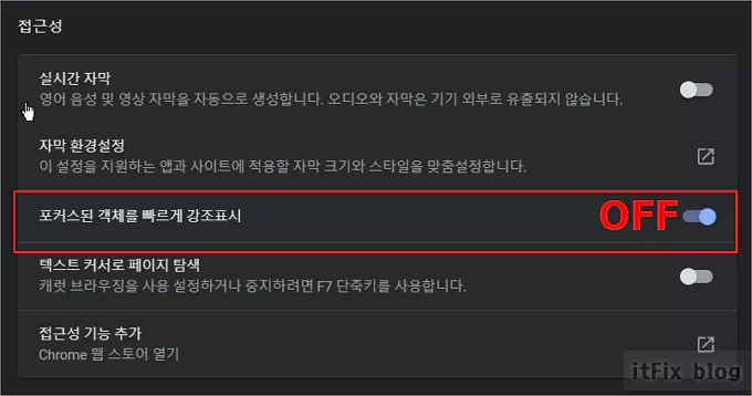 2. 크롬의 옵션중 포커스 기능 활성화로 인한 검은색 박스