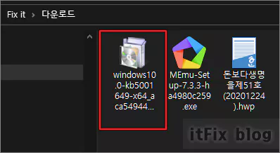 이제 마지막으로 파일을 더블 클릭하여 윈도우 업데이트를 진행합니다.