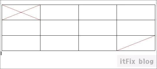 아래의 이미지처럼 3줄 4칸의 표속에 빨간색 대각선 모양을 만들어 보려고 합니다.