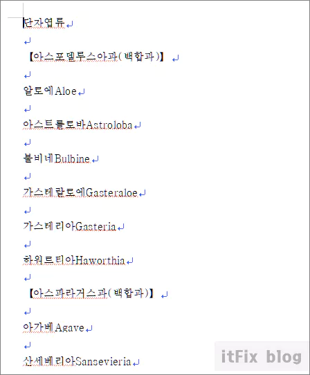 아래의 리스트는 다육식물중 단자엽류의 리스트입니다.