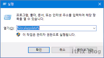 명령줄에 %localappdata%을 타이핑한 다음 확인 버튼을 누릅니다.