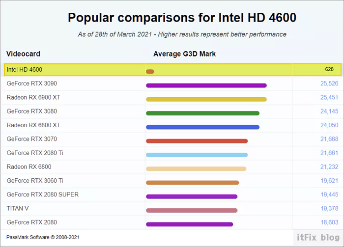 인텔 내장 그래픽 카드 칩인 HD 4600의 성능을 간단히 그래프 이미지를 통해 살펴보면 이해가 빠를 것 같아 과거와 현재의 벤치마크 테스트 그래프를 주로 사용했습니다.