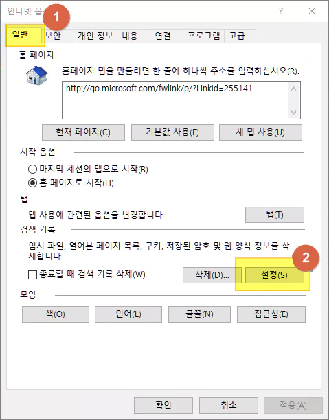 1. 익스플로러 초기화 및 캐시 옵션 설정