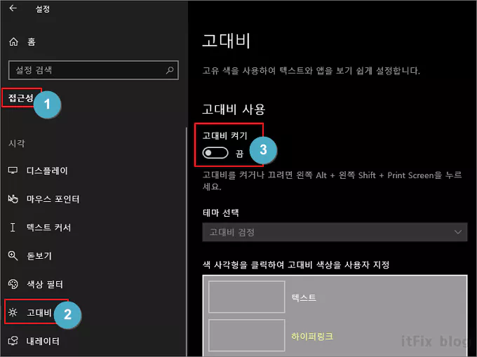 윈도우 접근성 기능 중 고대비 기능은 색상의 대비가 낮은 텍스트는 시력이 낮은 사용자가 읽기 어려울 수 있습니다. 이러한 문제를 해결하기 위해 윈도우에는 강력한 대비 색을 통해 PC에서 텍스트를 더 빠르고 쉽게 읽을 수 있도록 고대비 테마를 설정할 수 있지만 해제에 문제가 생기는 경우가 있습니다.