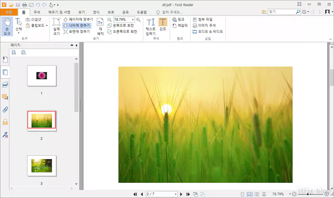 샘플 이미지를 이용해 하나의 PDF로 저장한 다음 열어 본 PDF 파일은 아래의 이미지처럼 완벽하게 작동합니다.