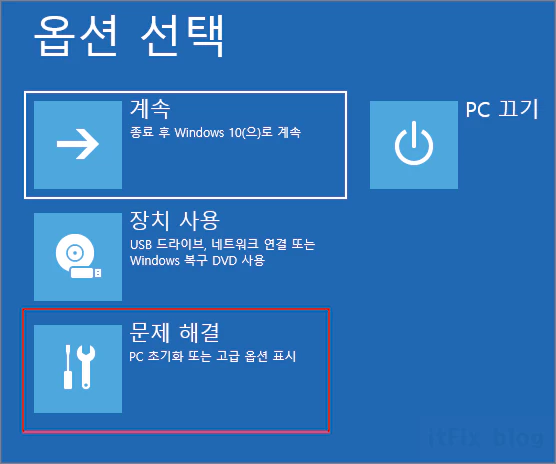 ② 옵션 선택 화면에서 문제 해결을 클릭합니다.