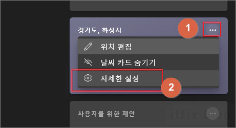 이때, 가운데에 날씨 항목이 보이는 데 날씨 항목 우측 상단의 점 3개를 클릭합니다.