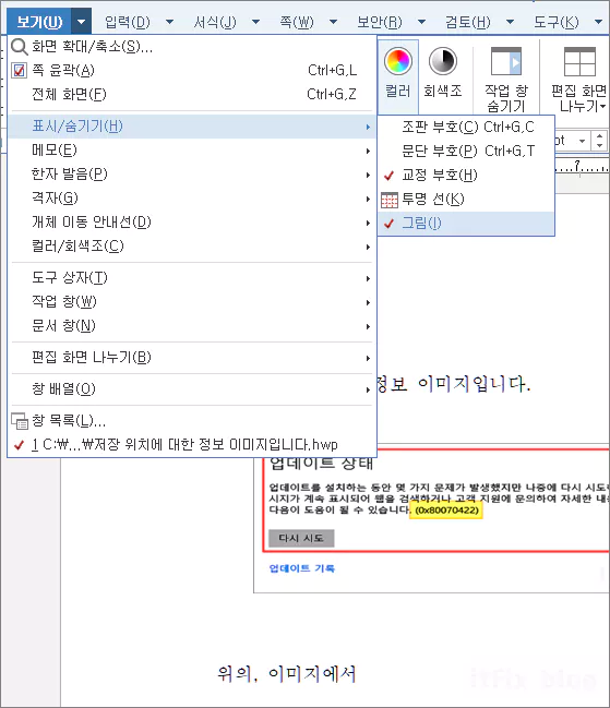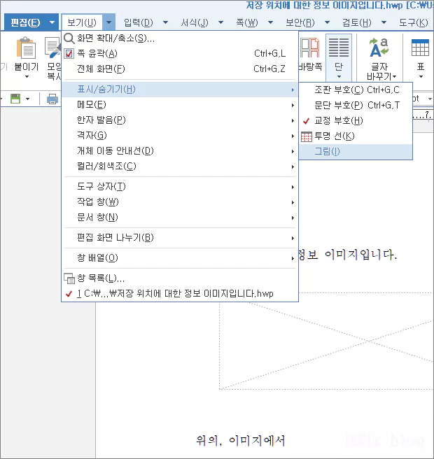 한컴 한글 워드에서 이미지 그림이 보이지 않는 경우의 해결 방법