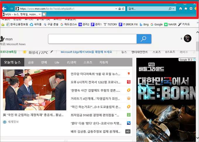 인터넷 익스플로러 상단 메뉴바 색상 변경하기